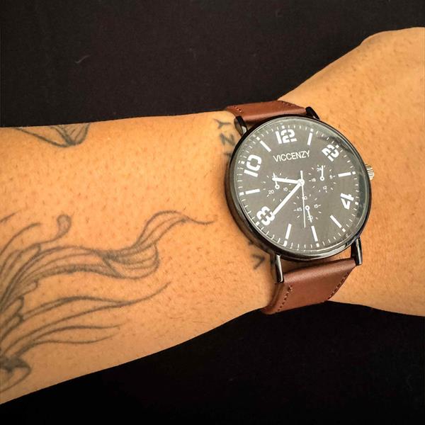 Relógio - Classic Chrono é confeccionado em metal anticorrosivo com pulseira em courino, que dispensa ajustes.